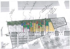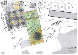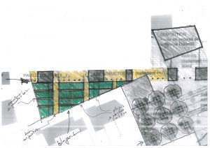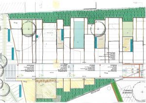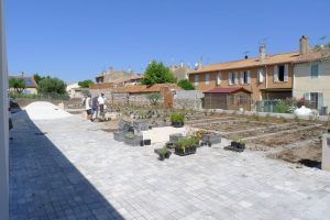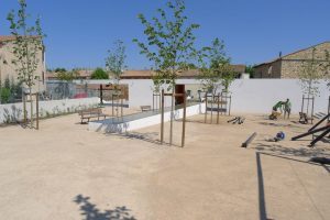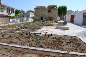 La proposition de l’équipe fut de partager dans cet espace très en longueur, un espace libre, alternant espace récréatif et de repos, un petit théâtre de plein air, et un jardin thématique dédié aux plantes méditerranéennes.