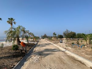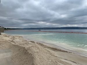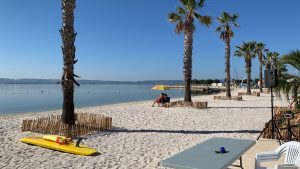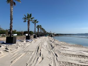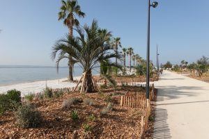 Il fallut d’abord ‘déconstruire’ la jetée formée de blocs de roches, qui fermait le parc, créer la plage, intégrant l’étude marine fine réalisée précédemment, prendre en compte le biotope local, ainsi que la palette exotique voulue lors de la création du parc.